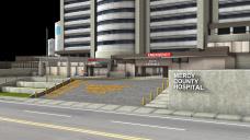 Did a 3 second animation of the doors closing. Only took 3 minutes to animate. I will put the pillors, rails and pillons back in after in After Effects where I will be adding a live human extra. The hospital itself took 14 minutes to render. I will also be adding some cloud movement. I also might change the name of the hospital and the diarama inside.
