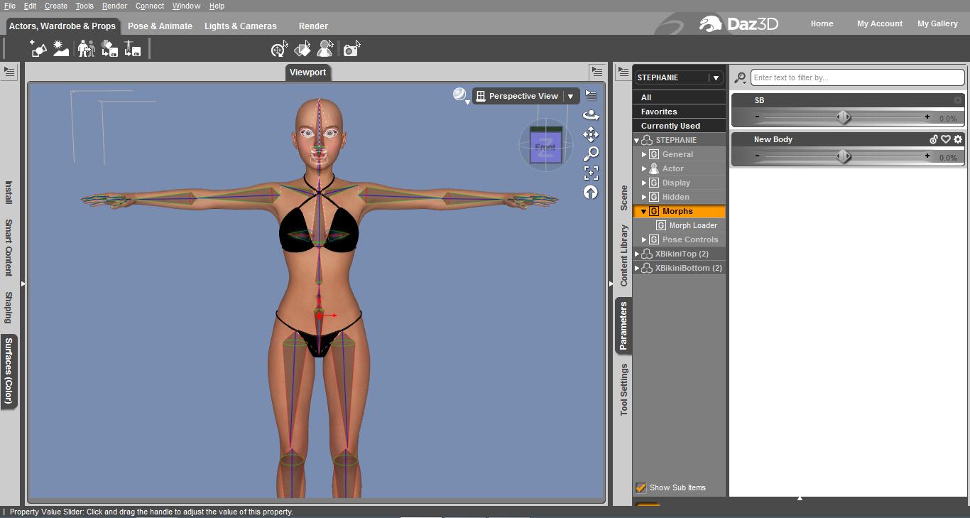5. The rig is now adjusted to the body shape with the morph slider in 100%.