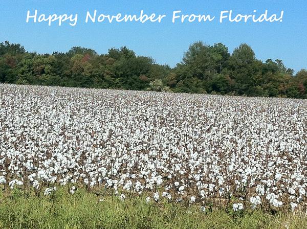 Just wanted to show a beautiful field of cotton that I drive through when I run errands. It's picture perfect because we've had NO rain since it came into bloom, so each HUGE puff of cotton is perfect with NO weathering. Enjoy :)