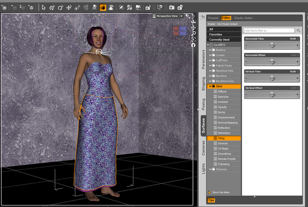 For tiles that do need to have the horizontal and vertical repeat adjusted, look for one-click presets in content library. Khory has these with the floors to make the pattern larger or smaller. Marieah also includes them and those icons have a number on them to tell you how many times they will repeat. They give you a quicker way of changing those slider settings that I showed in my image above.