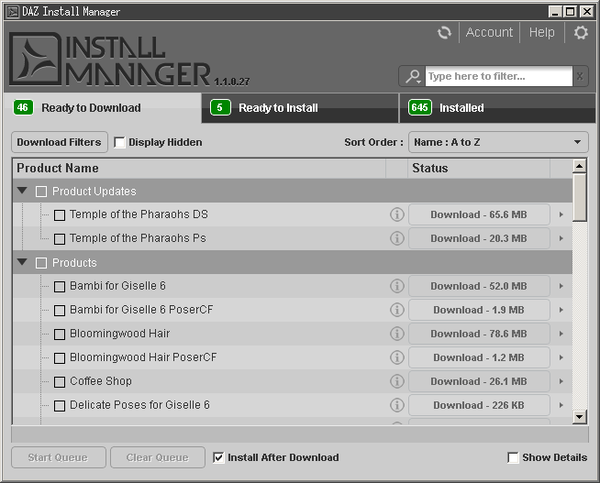 Novica, have you tried reinstalling DIM (perhaps manually by downloading the exe from your Product Library) as maybe you've got a duff update of DIM there. Because I've not seen any problems like you have - still getting updates and the install checkbox (I always install manually and only use DIM to DL) This is what I'm seeing right now...