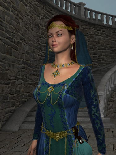I've just started playing with some of the new PC+ items released this week and thought I'd show a couple of renders of the Medieval Fantasy Accessories for G2F by DAZ/Ravenhair. For PC price you get a pretty impressive bundle of (mostly conforming) jewellery, belts and footwear. I've only shown here one each of the necklaces, tiaras, earrings and belts. I was particularly impressed with the number of adjustment and movement morphs in most of the pieces (I even managed to get the head veil to fit over this hair at my first attempt).