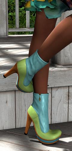 I want to say when I think of boots, I think fall or winter. Slosh was smart and made them stylish so they can be boot-shoes. The details are really good- even the zipper pull has options- gold or silver. They are a bit glossier than shown, I changed the surface settings. I wanted the boots to be more like shoes than boots and shiny makes me think boots/rain/cold.