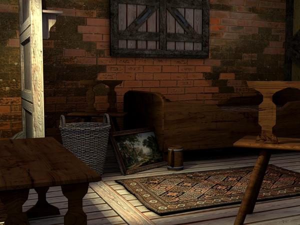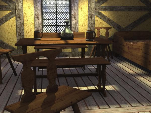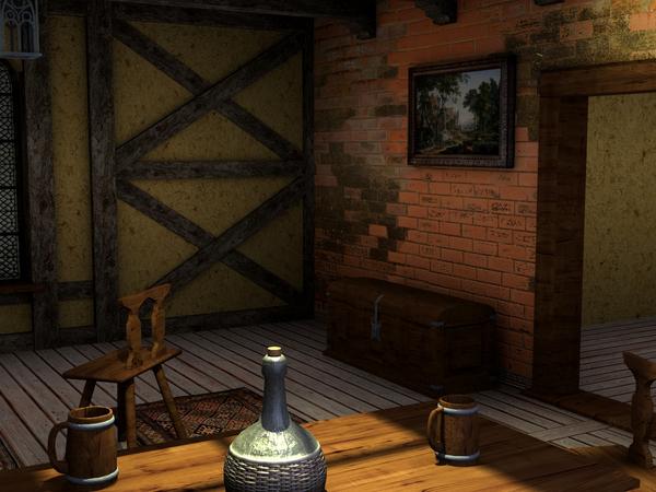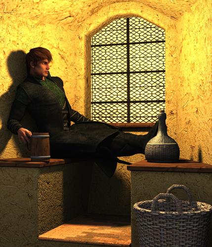 Jason is relaxing with a brew, and wondering how much of it he has already had. :) I wanted to see how the lights (default) with Medieval Interior worked on people.