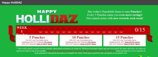 I've noted in another thread that the punches are remaining until Dec 19th, and I am pretty sure the 5% was on gift cards and not punchable items. (which is what it says now.) So if you bought anything today be sure it took 5% off if you qualified (or 10%, 15%) I don't know when it changed over from gift certificates to punchables. I don't think I'm losing my mind because I remember thinking gift certificates was different than the other punchable promotions, that it was always the items that got the discounts. Am I right?