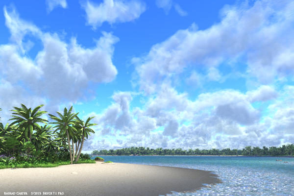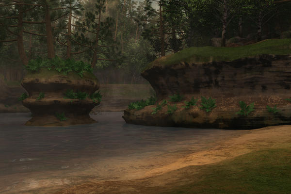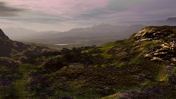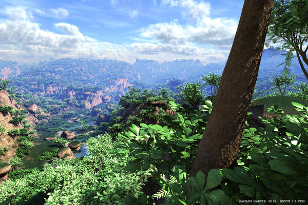 This one is very simple render, in as much as it is basically just 3 terrains + Some added vegetation Nothing in this render is imported, it is all available from Bryce 7 pro, including the vegetation. The materials are mostly my own, done within Bryce.
