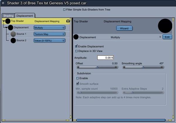 Pardon my ignorance, but what do you mean the "displacement map caused the bikini to render inside the figure"? I just had a similar sound problem with Hongyu's Bikini 2 for V5 in Carrara. I ended up spending around an hour tweaking the fit using the built-in parameters for the bikini. Your post makes it sound like there is an easier way to do this, but using negative displacement? Would you kindly share the "how" of this technique? Thanks!