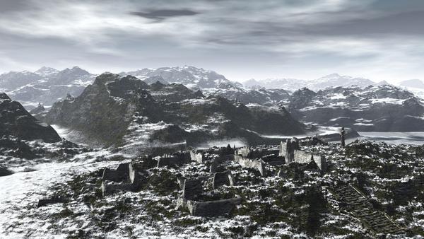 chohole, that monochrome render is quite striking, very nice, love the ruined city and the statue.