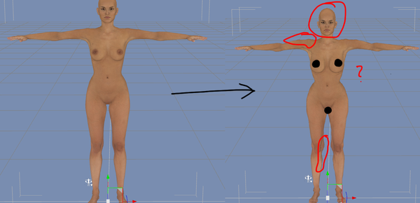 No problem I was too slow, thanks for answering me :) More pictures of the weirdness. So y'all get a better impression. Btw I havent changed her breasts and face at all, but the muscle morph still does weird stuff to my poor girl :0 The last Zbrush snapshot is the morph, I just added some stomach muscles... but yea obviously something weird is going on. Daz is funny.