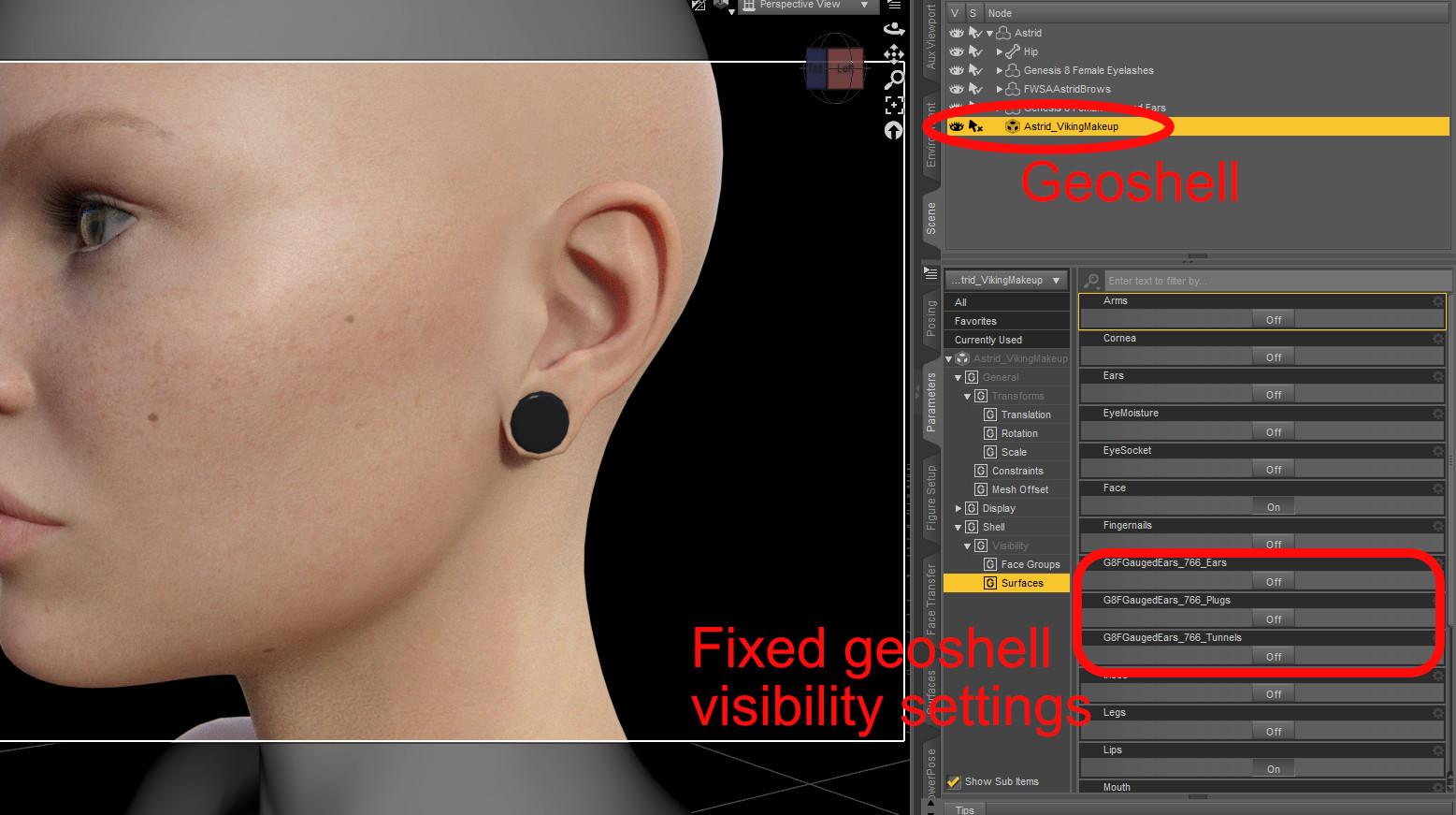 I bought Ariens Guaged Ears for Genesis 8 Females and cannot for the life of me figure out how to get the materials to match. The skin is an Iray MDL. I'm clicking to match the IRAY materials. I saw somewhere else to check the parameters for geohells in your parameters, but I have none. Any help would be appreciated, because I feel like I've just wasted money on this product. Thanks!