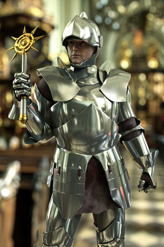 Atticus Bones: love the reflections on the armor. If this has a weak point, I think it's probably the character's skin. It just seems a little dull to me, not exactly sure why. The pose looks a little stiff, too...plate armor allowed more range of motion than is often believed. I'd like to see a more natural or casual-looking pose...even a slight asymmetry would help here. But nitpicking aside this is very impressive work!