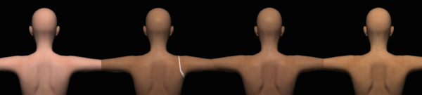 I've lined up, for comparison (left to right): Stephanie 6 (default shader), Stephanie 6 (Ringo Shader), Taylor Character Preset converted to S6 UV (Ringo shader "same master"), Taylor original (default shader)
