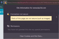 FYI, for some reason on Firefox, pages at Daz3D.com and for banks??? are being displayed with a yellow triangle caution thingie over the lock on the url address up top. This started last night so don't know if it's a Firefox thing or what. Claims are that any information sent is not secure and viewable to the whole world. I did send a feedback to the bank as well but golly gee whiz.