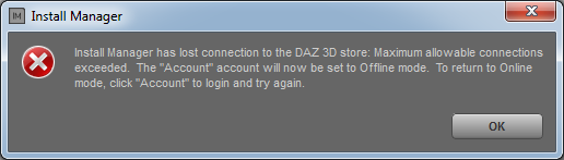 Also, DIM and DazCentral use the same backend servers so their sessions are shared, which means you can only have one DIM and DazCentral connection combined, just in case you were trying to run both for some reason