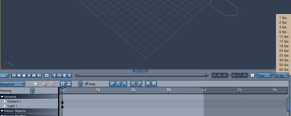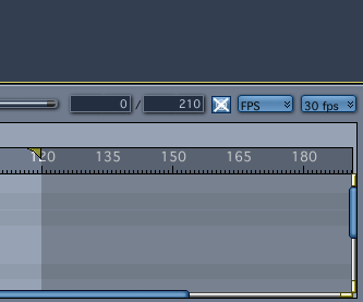 This next bit is for people new to animation and video: I mentioned above that Carrara has the choice to display two time code schemes. One is FPS (Frames Per Second) and the other is SMPTE (can't remember the full acronym meaning). FPS is fairly straightforward. If you want a 10 second animation at 30 FPS, you'll need 300 frames, and the timeline will show it as 300 frames.