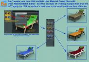 The material zones must already exist in the item, in order to use the scripts. The scripts do not split any material zone to smaller ones (yes you will need the geometry editor for this). The pillow was in a different material zone on the small mattress item of the lounge chair from the begning... sorry if it is not clearly shown ...