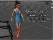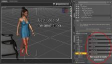 If the only way to animate a model is through the pose controls... I don't see how I could achieve my goal here. There is just not enough flexibility for each body part. I couldn't find a way to make her upper body start to twist while movint the left arm to grab the seat harm. No controls over the sholders or torso (except for the breasts). Also, I couldn't find a way to move her right foot forward and to the right. There must be one since such a movement have been used in other walking animations. But I can't find how.