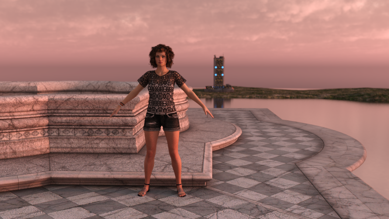 I set up two shots, first scaling the building 'correctly', then moving it to a reasonable distance away (180,000 units, or around 1.8 km, unless I really misunderstand units in Daz). I did not use matte fog as at that distance even the 10,000 m setting almost completely obscures it. I then brought the original building in and moved it until its size was approximately the same as the distant building, then duplicated the scene parts (Terradom BZone and Water and the building) and scaled/moved them to match the distant building. Outside of horizon placement (which could be corrected or obscured with more distant terrain), they more or less render the same. But which is better, especially working with a larger backdrop scene?
