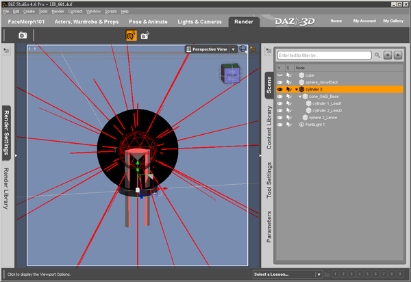 I am trying to create an indicator LED, so I made a sphere primitive and gave it a red ambient channel at 100%