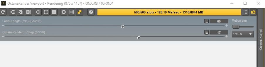 This should work, you could also change these parameters in the Camera settings in Daz under Octane settings, same settings appear there when installing Octane plugin :) You can also set different camera focus from the viewport from the borrom tabs where you can set it to connect to the Daz camera settings (so focus isn't auto but where your actual focal distance is), or if you want it to a single point autofocus or area autofocus. You can also click on things in the viewport in real time and it will refocus where you click it/select a bone or material. Most of the time Octane auto DOF is pretty smart on its own, but these options always come handy if it decided to throw itself off onto a far or close item instead of the model :) If you don't want to fiddle with it too much switch between area and single point and back and it will refocus better given a second chance if it didn't first time around. Except for DOF Octane comes with a few more handy settings under cameras you probably want to test out and get familiar with in case they prove useful for your workflow.
