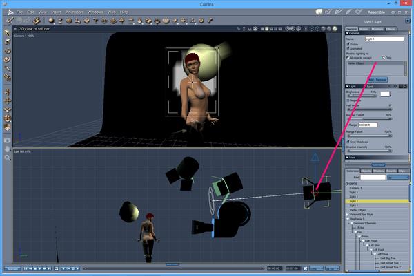 Here is a screen capture of Carrara 8.5 Pro and I am using Genesis 2 Stephanie 6, Carrara skin shader and a new dynamic hair. I am just trying out different light styles. After the screen capture comes the final render version.
