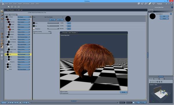 Here is a screen capture of the Dynamic Hair and it's shader.