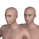 I am trying to create a vampire that has the tips of his fangs pratruding from his mouth and lying on top of his bottom lip when his mouth is closed. What would be an easy way to accomplish this?