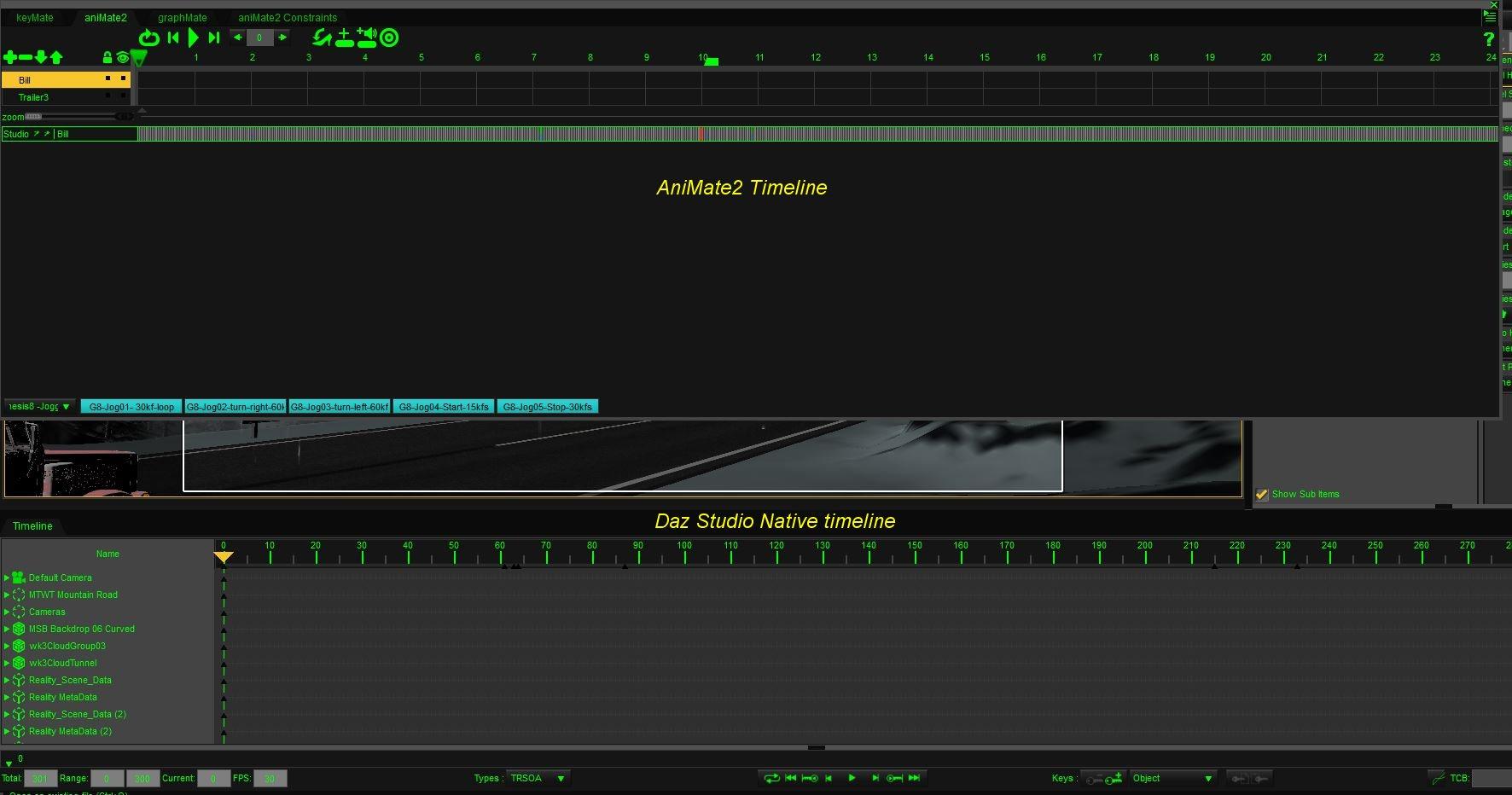 Top is the AniMate2 Timeline. the Bottom is the Daz Studio Native timeline