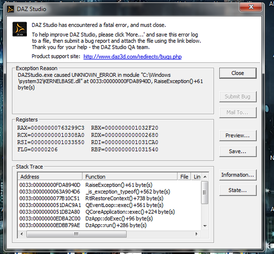 For some time I have a problem with daz . When trying to save a project ,appears crush porogram closes and the project is not saved.