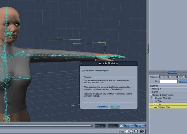 Next, attach the shirt that has the morph to the skeleton of Genesis2. Do this by