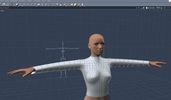 - Click on the hand to start vertex modeling the shirt in the assembly room. The shirt will return to the default shape.