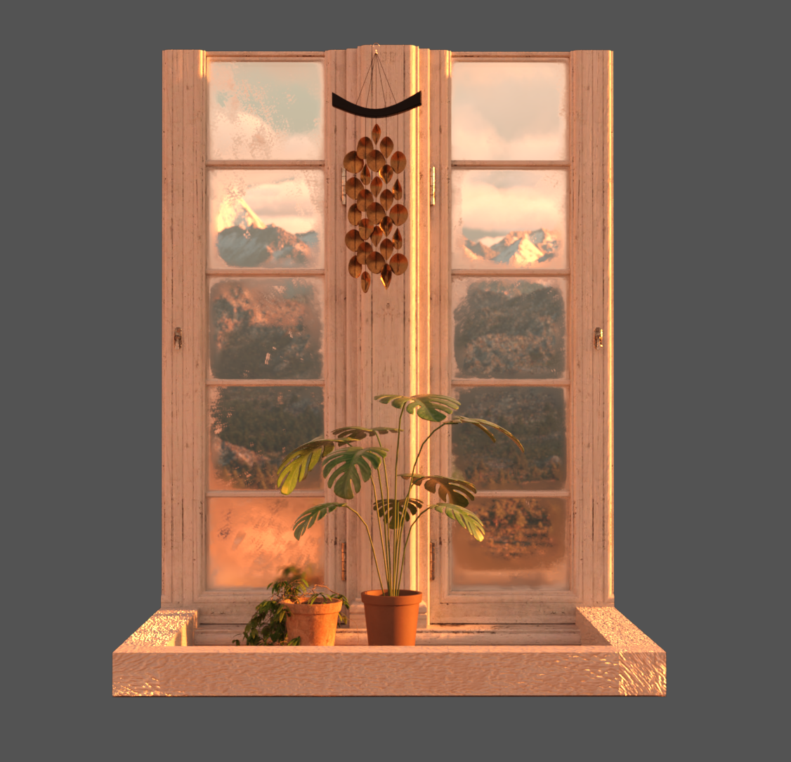Quick experiment making a windowbox. I stuck a plane with a mirror shader behind the glass so it'd catch the HDRI with the dome turned off.