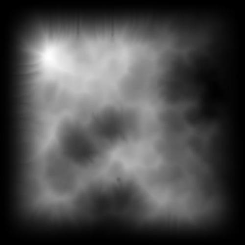 Back to the terrain. I applied a rain and wind erosion filter (set very low, just 3% or so), then exported the heightmap to photoshop. I used layers to create a broken trail ad successively wider swaths of land. The idea is to be able to use the layers list function to apply different shaders to different regions around the trail, and to be able to use targeted replicators.