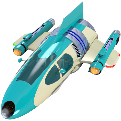 I just couldn't resist making a retro-cruiser of the Dart, with all the color and flash that was part and parcel of the mid-20th century, wrapped around the tech of the mid-23rd. Lots of new parts, from cowls over the bussard collectors that are inspired by the headlights of the '57 BelAir, among other 'hip' machines, to all sorts of chrome trim bits, over a smooth turquoise-and-cream paint job. What McCoy might fly around in on his vacations, before parking it back in the garage at the main Georgia estate and heading off again to Enterprise.