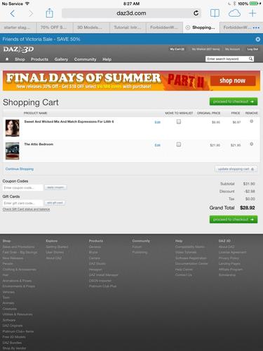 The sales are a bit all over the place, but it's my understanding that by placing the Lilith 6 item in my cart I should receive a 50% (PC+) discount on the ForbiddenWhispers item, as part of the Day 3 Lilith sale which is still being promoted.