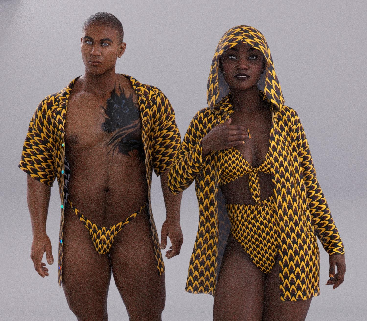 I was hoping for more similar outfits, for male and female. (I'm not picky about swimsuits or contemporary wear.)