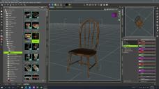 Three monitors, left = Content Library, middle = Scene and Parameters, right = Viewport
