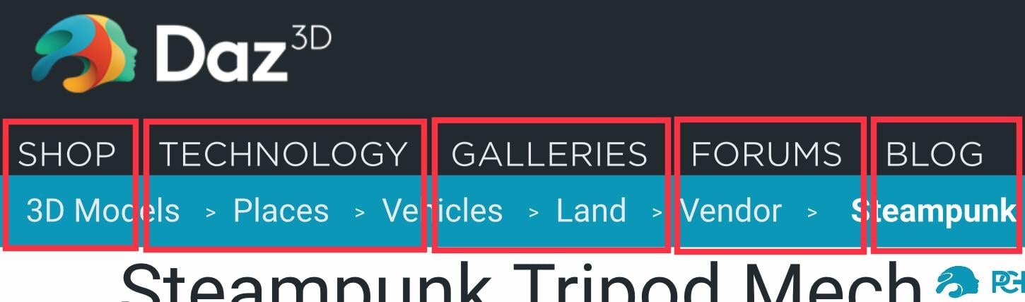 Some of us use our mobile devices to shop,(I use my iPad) and there is a very annoying bug that has been going on for a few weeks and it’s really bumming me out... At the top of the screen at both the forums and the store there is a black banner or area that contains clickable links titled “SHOP”, “TECHNOLOGY”, “GALLERIES”, “FORUMS”, “BLOG”, “HELP” and “DOWNLOAD DAZ FREAKIN’ STUDIO” Below that is a blue bar which depending on where you are contains other links...