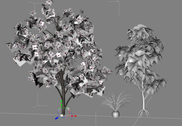 - the tree on the left looked very nice in Xfrog with flowers and all but has got huge leaves in DAZ now so the textures don't fit
