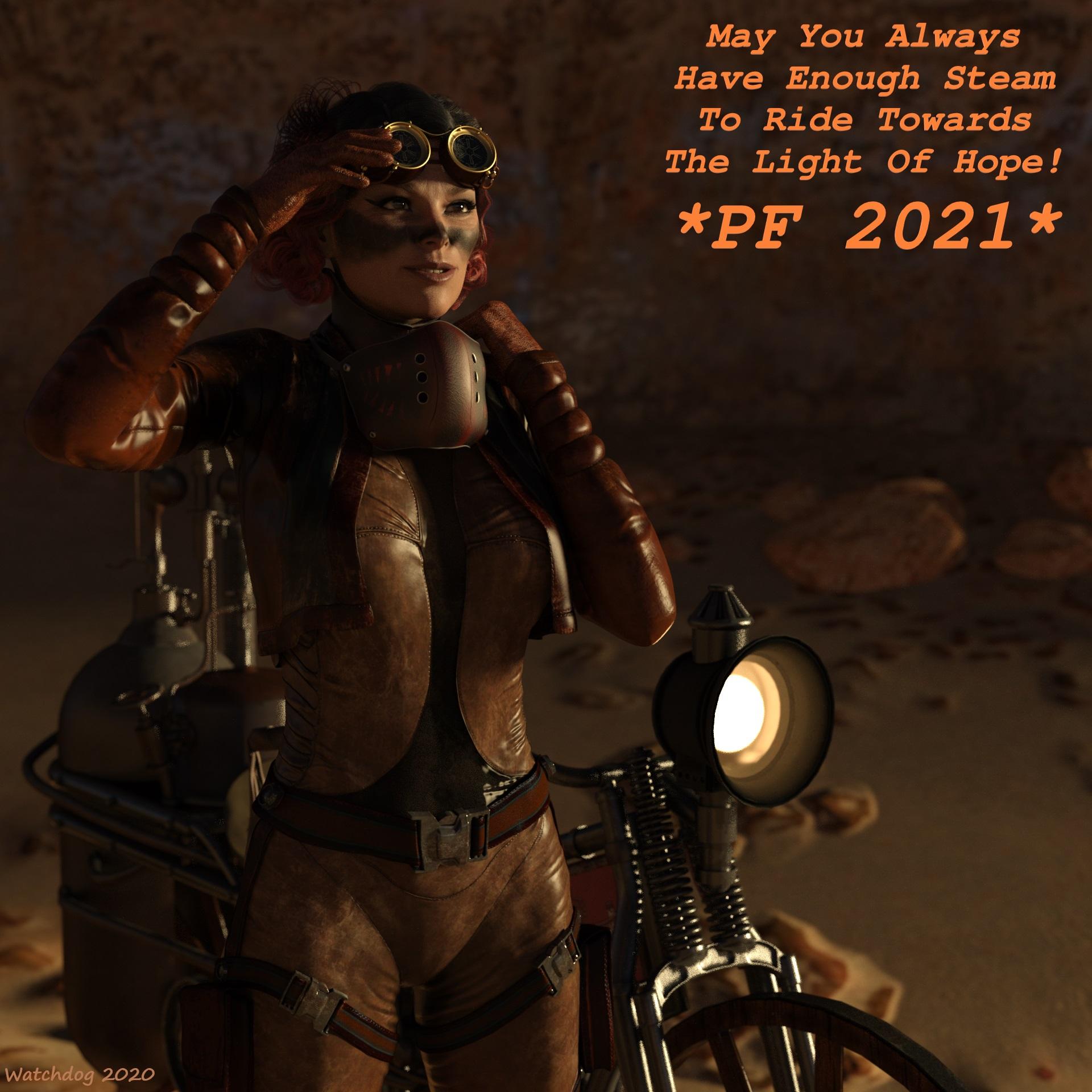 Since Santa Claus is not part of our folklore at all, I decided not to use any such items. I used one of my recent renders to create a New Year wish card, also known as a PF (Pour Féliciter) card in Steampunk style.