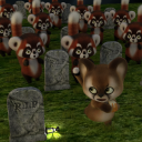 The instances are the gravestones and of red panda figure, Ping.