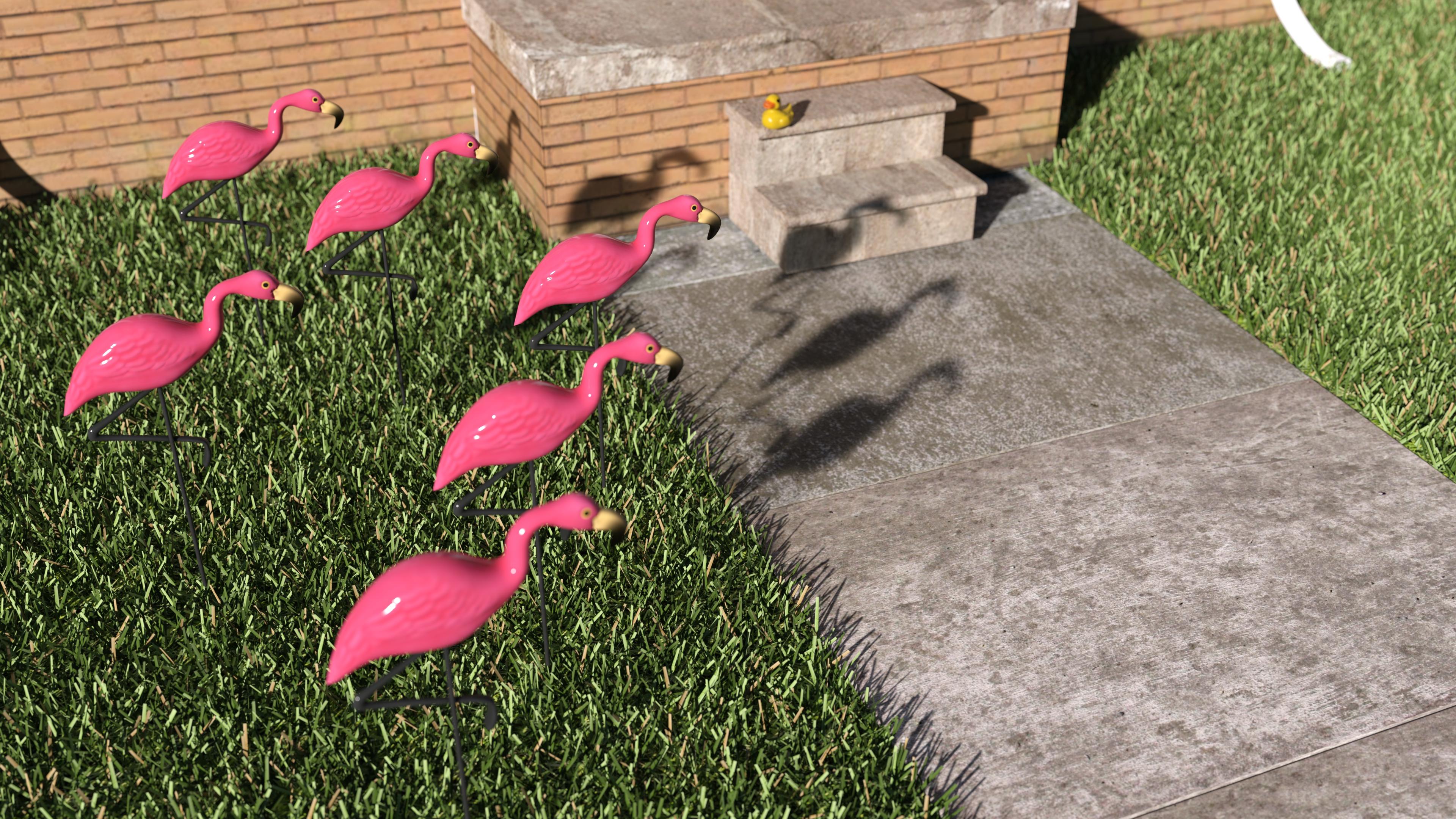 A new breed of pink plastic poultry has invaded Ducky's neighbourhood.