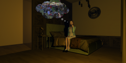 Spuddy: great idea and well made too. But maybe the girl looks a bit small for the bed? A grown-up girl usually can get to the floor with her feet, when sitting on a bed, though maybe just, when the bed is a box-spring.