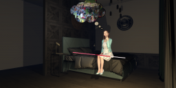 Spuddy, this image fits the theme perfectly.  She is thinking of parties and hanging out with friends.  Same thing I'm thinking of after all these months inside.