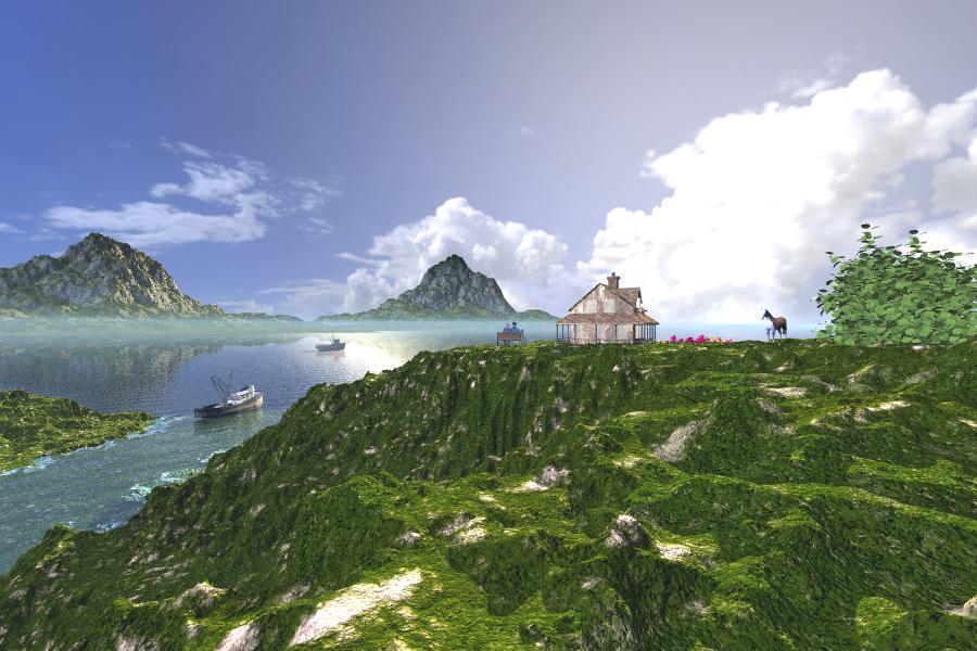 Hansmar, Yellow Pen, Horo, adbc, NGartplay and mermaid010 - thank you for the comments! I truly appreciate the suggestions on the overly bright foreground. I agree. I've lowered the illumination and re-rendered it , as shown here. But it may still be too bright. What do you all think?