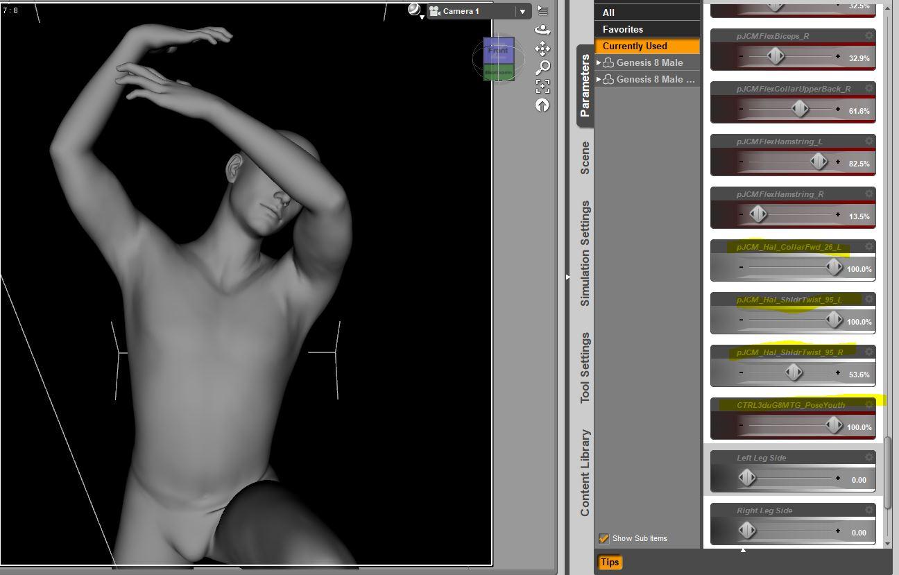 Here's an example of Base Male with JCM's firing. I weeded out most of the JCM's that were misbehaving, but I like Hal and don't want to uninstall him In this case, The JCM is most visible in bunching the bicep. The 3dU morph for youth which is firing makes a rather substantial difference to the pose, and will warrant uninstalling.