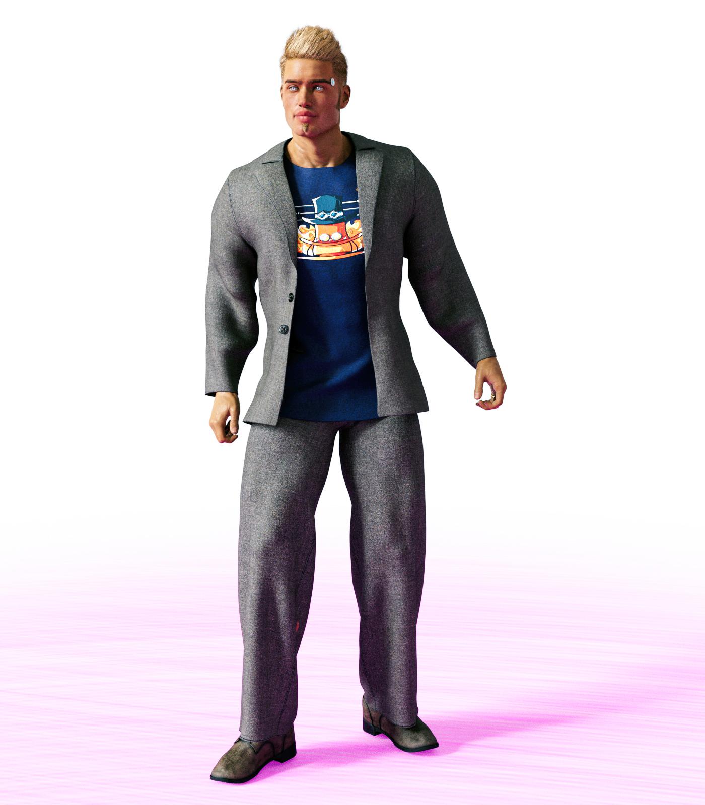 Here's dForce Casual suit for G8M' males. It was packaged with the new character, Fred, who I rather like. Unfortunately, I don't find the suit fits very well, and this is a shame since casual men's business suits are not very common. I thought maybe I could kitbash the blazer with jeans and move beyond the wide-leg trousers, but the way the blazer fits is tight in the wrong places and loose in the wrong places.