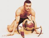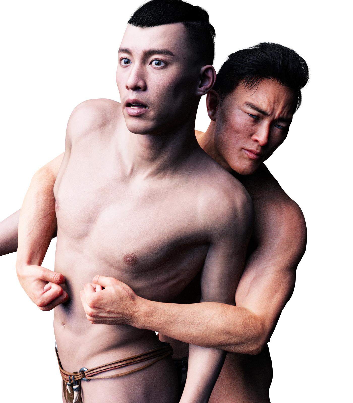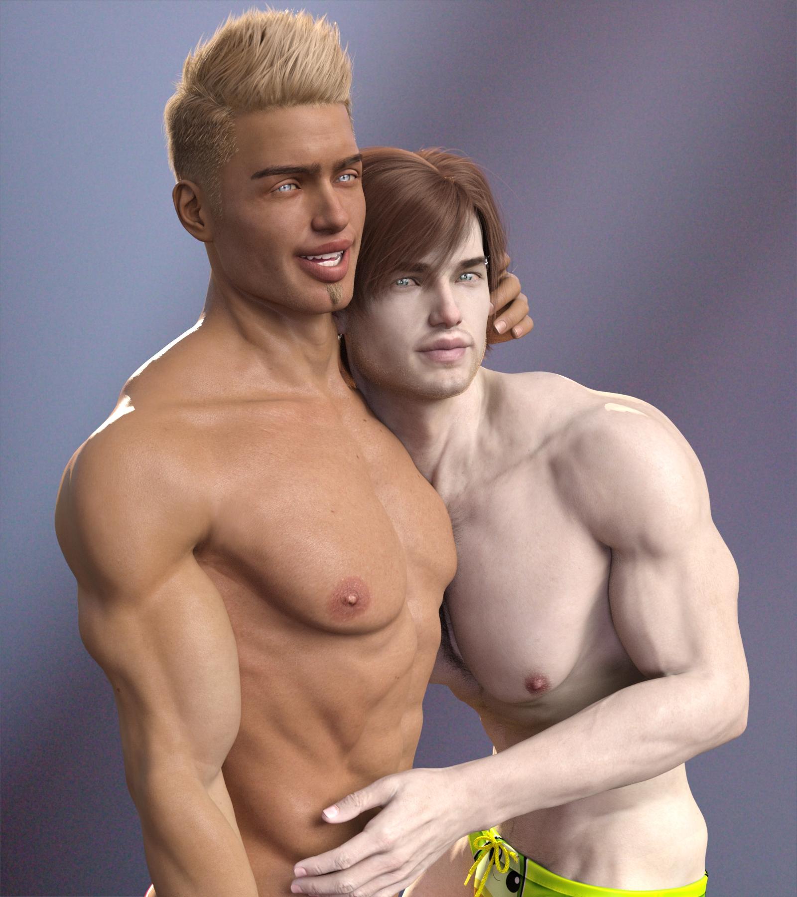 Okay, this is my final Squish render for now. It is just a test nothing special so not grand art.  You can really see it in the chest and pecs area. Particularly Owen's left pec is sagging. Boyd's left hand has moved slightly.