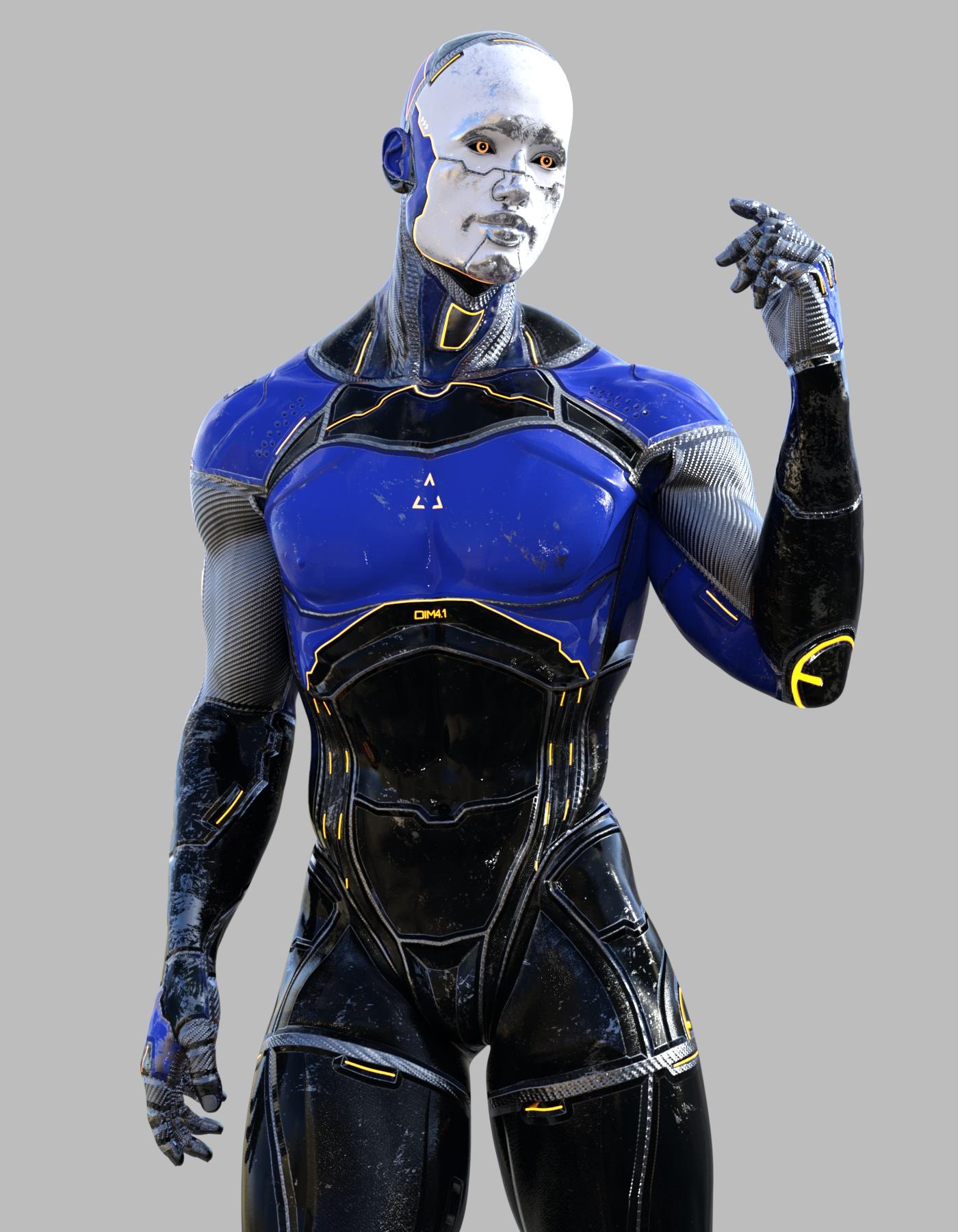 So, I was stoked to see that we have at last a male cyborg https://www.daz3d.com/dim4-cyborg-for-genesis-81-males ; after so many female ones. The Cyborg itself is a geoshell but you can apply only sections to give the appearance the character is part cyborg instead of completely robotic.   In this case, I chose to use him on Boyd. There are no gen mats (yeah, I know you were going to ask, right? ), but I see no reason you can't make a set, that matches the plastic or metal if that's what you want.