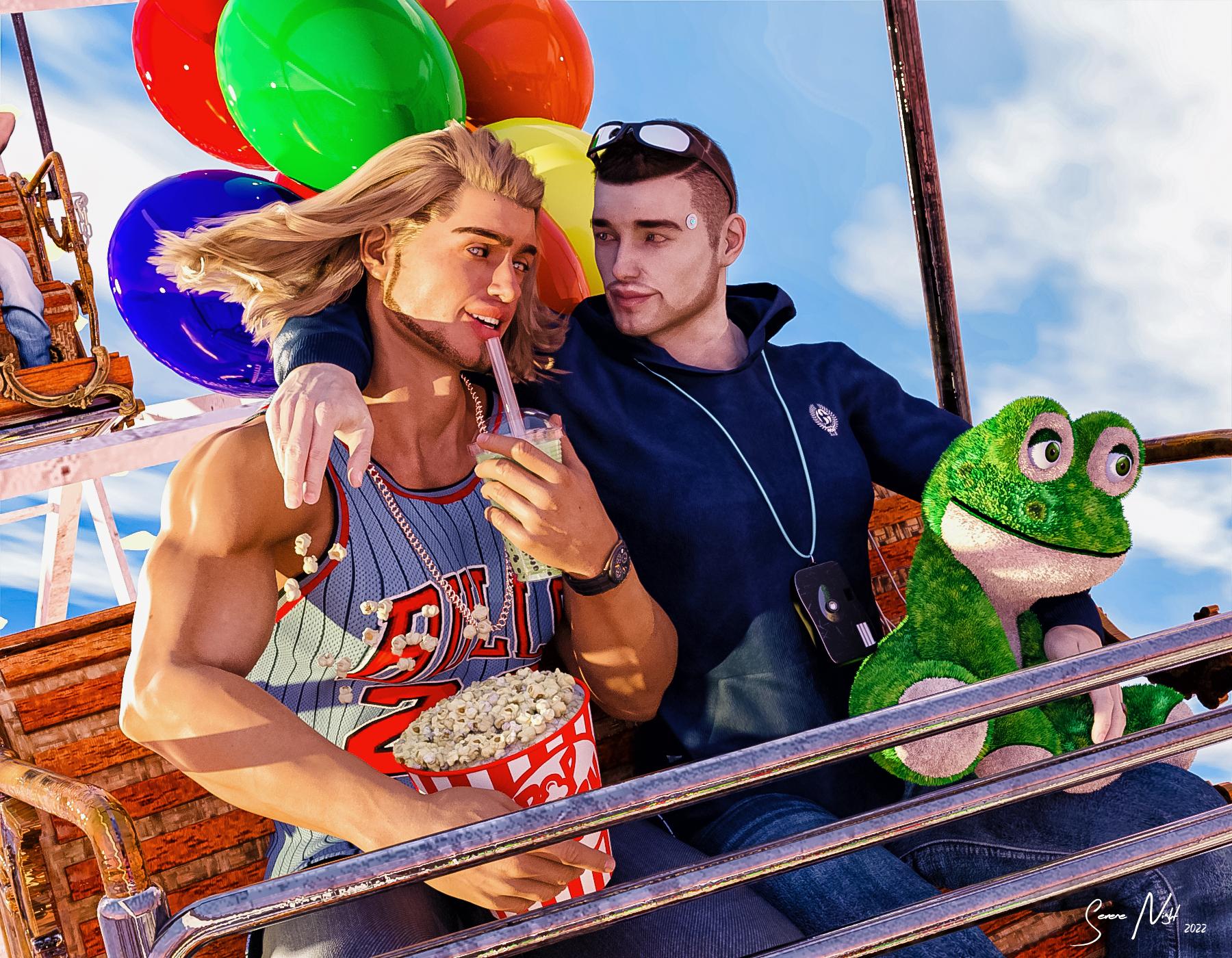 Owen and Boyd on the Ferris Wheel. I figured I ought to use the Ferris Wheel for something since I bought it and it languished in my runtime. Boyd is wearing the top from the Baggy and Jo Jo outfit.